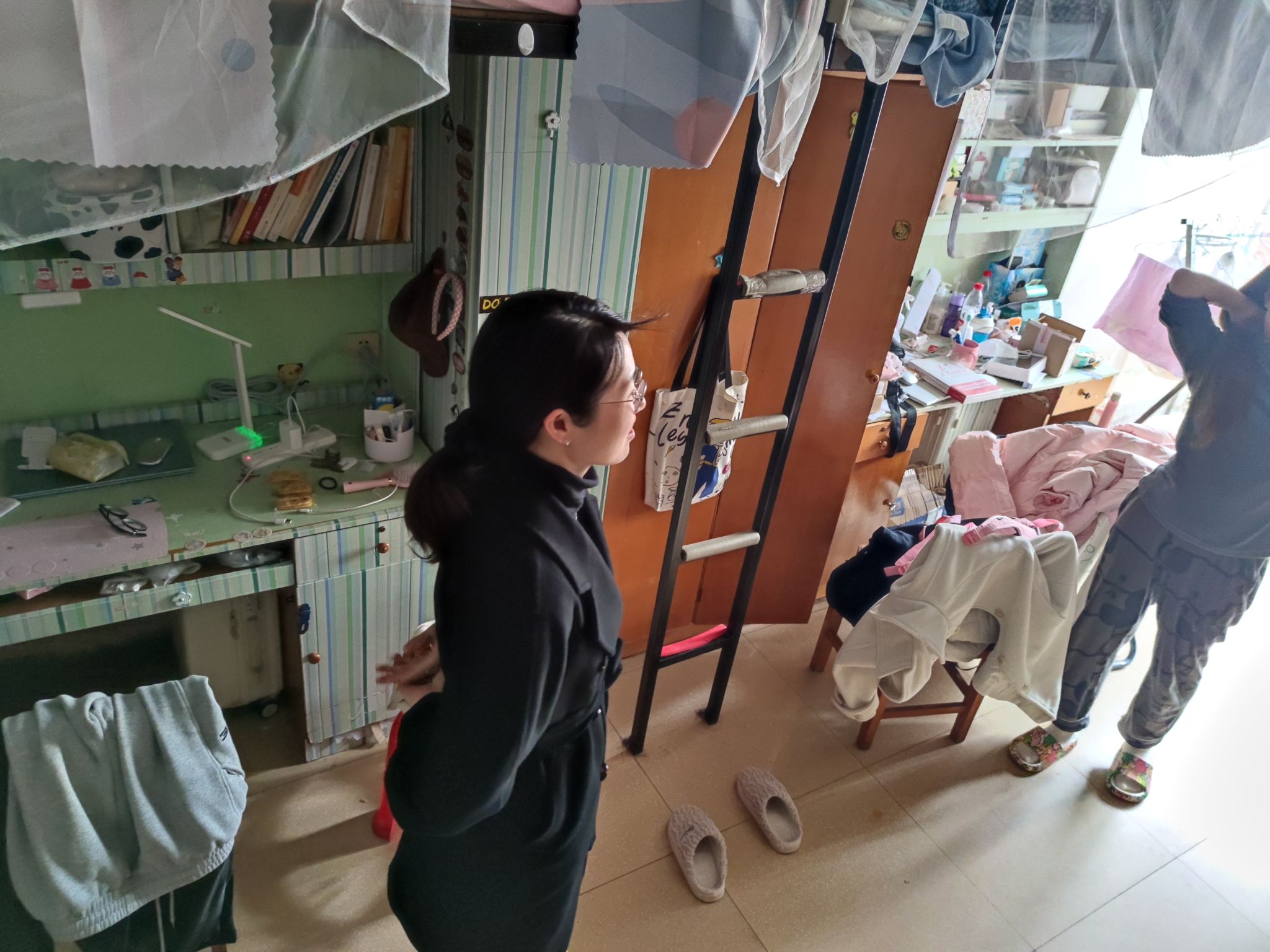 同时,周雄艳深入学生寝室和同学们交流寒假生活,询问开学适应情况,并叮嘱大家要尽快调整作息,融入集体生活,室友之间要互相帮助、共同进步。