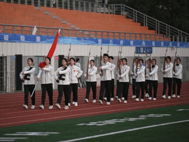 伴随着晨光熹微,国旗护卫队身着整齐制服,迈着铿锵有力的步伐,昂首阔步走向升旗台。他们身姿挺拔,目光坚定,每一步都承载着对先烈的崇敬与对历史的敬畏。当雄壮的《义勇军进行曲》奏响,全体师生肃立注目,鲜艳的五星红旗冉冉升起,在晨风中猎猎飘扬,映照出师生们砥砺前行的精神风貌。