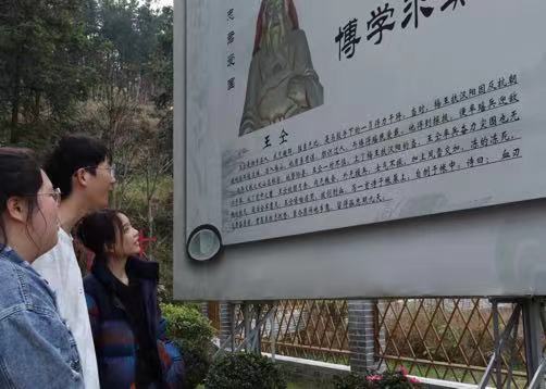 党员代表在忠孝文化牌下合影