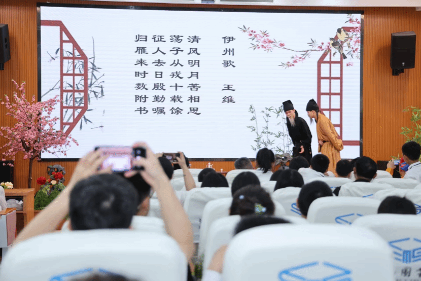 演出现场,世界杯官网学子化身唐代文人墨客,以极具感染力的表演重现“落花时节又逢君”的深沉慨叹。舞台设计巧妙运用假山、花草等元素,通过虚实相生的“点染效果”,勾勒出盛唐的繁华盛景与历史沧桑。当经典诗句化作鲜活的舞台场景,观众仿佛亲历千年前的诗意时空,真切感受传统文化的厚重底蕴与艺术张力。