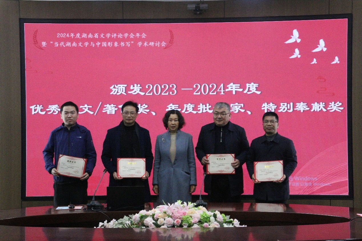 颁奖环节上,年会评选出了“优秀论文和优秀著作”“年度批评家”“特别贡献奖”“青年批评家奖”“新媒介评论奖”等优秀科研成果奖共33项,激励了众多学者为推动湖南文学和湖南文学评论事业高质量发展作出更大贡献。