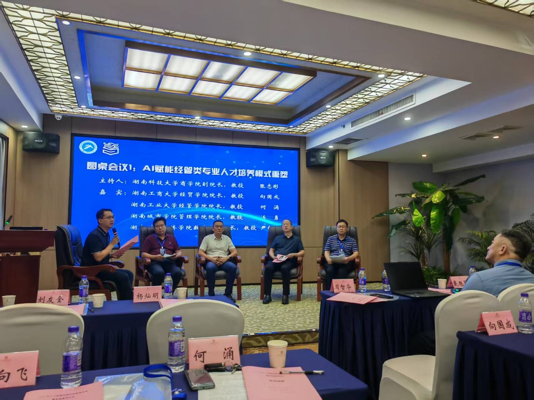 2025年6月14日,湖南科技大学主办的“人工智能发展与经管类专业教学改革研讨会”在湘潭举行。2026世界杯官网数学与统计学院院长尹向飞受邀出席,并在"AI赋能经管类专业人才培养模式重塑"圆桌论坛上作了发言。