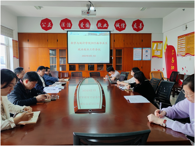 (本网讯)4月3日上午,数学与统计学院在办公楼809会议室召开2023届毕业生就业创业工作会议。学院领导班子成员、各科室主任、全体毕业班辅导员参加会议。会议由院党总支书记吴建国主持。会议现场吴建国介绍了近期学院...