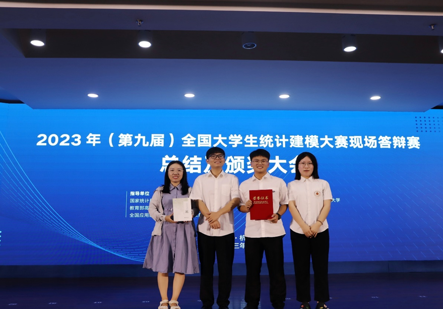 (本网讯)8月23日,2023年(第九届)全国大学生统计建模大赛落下帷幕,世界杯官网数学与统计学院教师杨文杰和尹向飞指导的由曾宇轩、杨涵哲、黄卫玲组成的本科学生团队,凭借论文《数字普惠金融对城乡居民消费结构的优化效...
