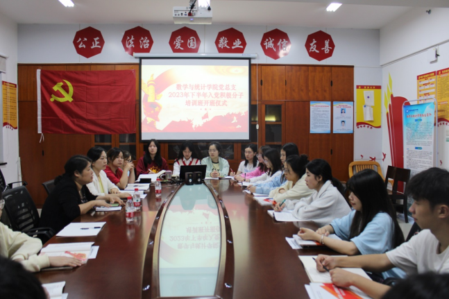 (本网讯)10月30日晚,数学与统计学院党总支在809会议室举行入党积极分子培训班开班仪式暨第一次党课。院党总支书记王萱作开班动员讲话,院党总支副书记杨艳主持,学生党支部书记吴雅芳及培训班全体学员参加开班仪式。...
