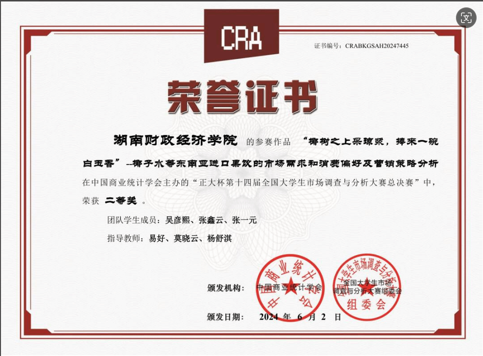6月2日,由中国商业统计学会主办、正大集团冠名、合肥工业大学承办的“正大杯”第十四届全国大学生市场调查与分析大赛本科组&在华留学生组总决赛在合肥工业大学正式落下帷幕,宣告本届大赛圆满收官。中国商业统计学会主办的全国大学生市场调查与分析大赛(以下简称市调大赛)创办于 2010 年,现已成功举办13届,累计有5400多校(次)、80 万多人参赛。市调大赛连续四年纳入《全国普通高校学科竞赛榜单》,是统计领域唯一入榜的全国性一流竞赛项目,...
