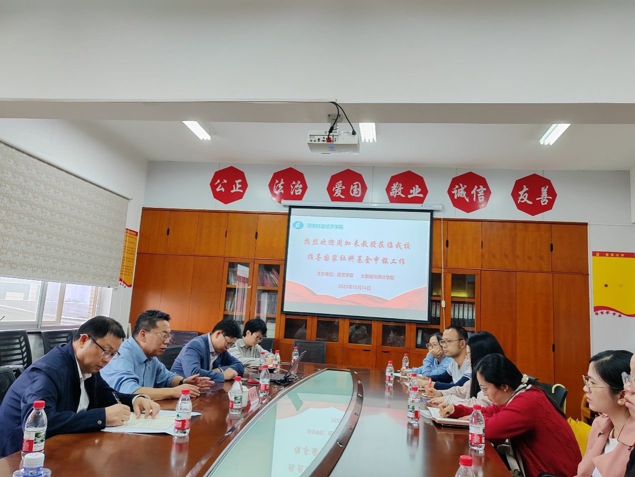 10月14日下午,大数据与统计学院在办公楼809会议室举办国家社科基金申报讲座,曾任安徽财经大学党委常委、副校长周加来教授应邀到会指导。会议由学院院长尹向飞主持,大数据与统计学院青年博士及其他学院感兴趣的博士参会。讲座现场周加来教授向参会人员详细介绍了2025年国家社会科学基金项目申报评审将项目类别进行匿名评审,使同类项目能在同一标准下公平比较,让研究价值与设计方案本身成为决定性因素。他强调选题是决定项目申请成功的关键,...