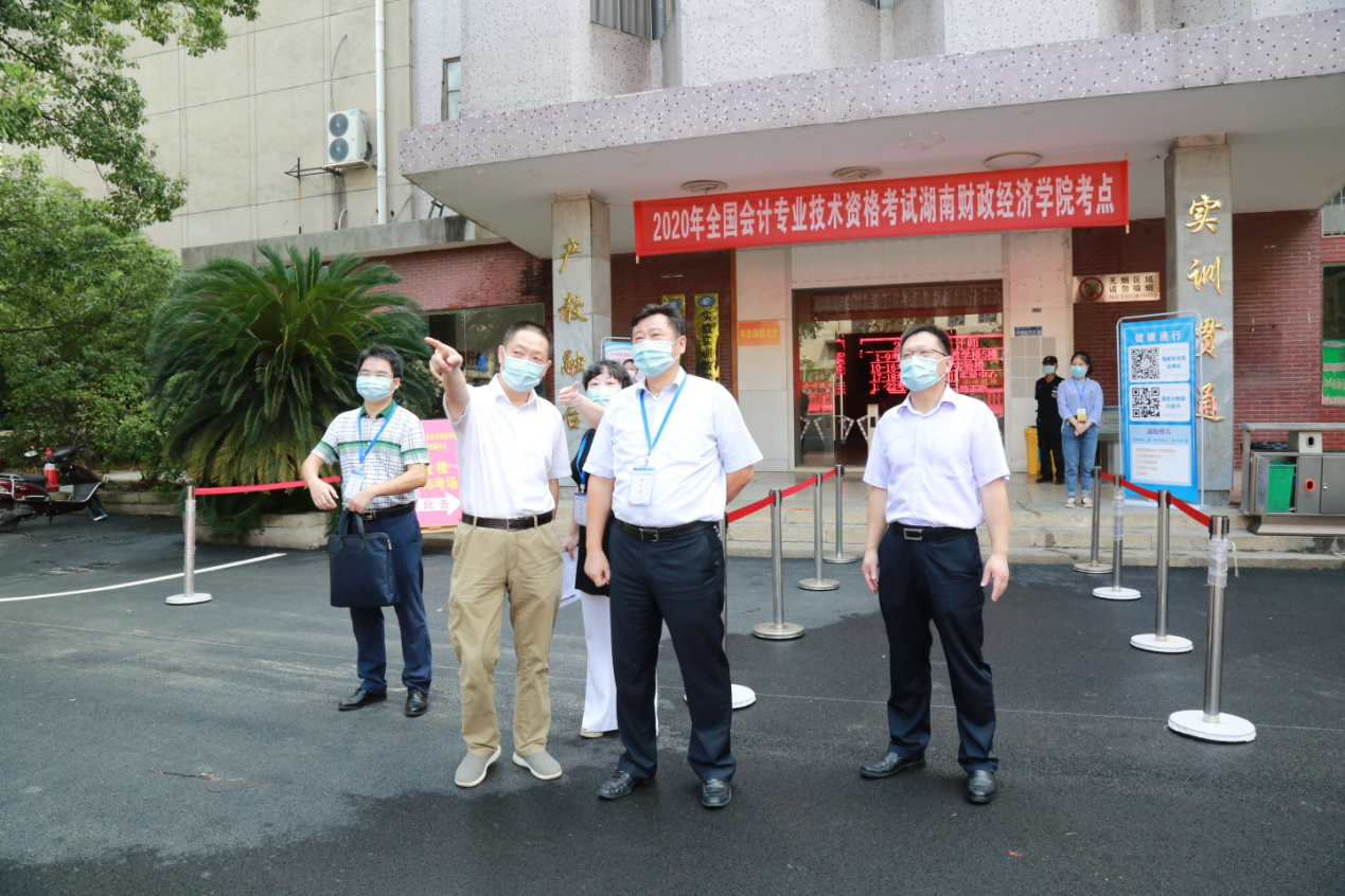 (本网讯)9月1日上午,省纪委省监委驻省财政厅纪检监察组组长、厅党组成员石建国,省财政厅会计管理处处长曾子兰,长沙市财政局总会计师杨健、会计处处长夏跃兵一行来世界杯官网就2020年度会计专业技术资格全国统一考试组考工作进行现场检查。学校党委书记肖湘愚、校长刘长庚、副校长刘建民、副校长王焕清、纪委书记李雪山及相关职能部门负责人陪同检查。