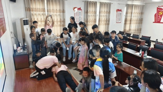 活动现场,志愿者以近期发生的溺水案例为切入点,结合乡村周边河流、池塘分布密集的地理特点,系统讲解了溺水事故的高发时段、危险区域及核心预防措施。志愿者一边演示操作,一边向孩子们强调自救与施救的规范方法。针对低龄儿童群体,团队特别准备了卡通动画短片与防溺水儿歌手势舞,通过寓教于乐的方式,帮助孩子们加深对安全知识的记忆。