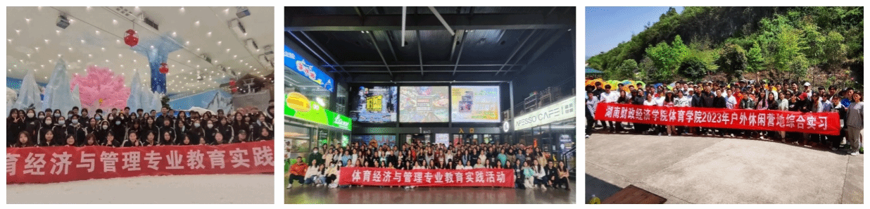 学院积极建设校外实践基地,与湖南体育产业集团有限公司、湖南湘江新区投资集团有限公司、湖南乐运智能科技有限责任公司、湖南乐汇体育文化传播有限公司、长沙酷攀体育文化有限公司、张家界萤火虫户外运动有限公司、湖南闪亮健身有限公司等10家公司建立了实习就业基地。每届体育经济与管理专业学生都去往基地进行专业认知实习,增进学生对体育产业发展现状、体育企业运营管理的感性认识,积累专业实践知识。学生参与实践积极性高,相关公司对实习学生也给与了高度认可。