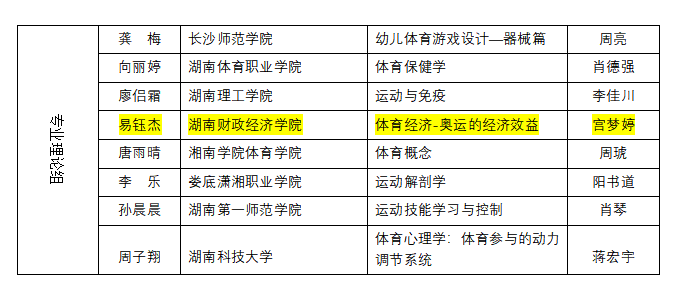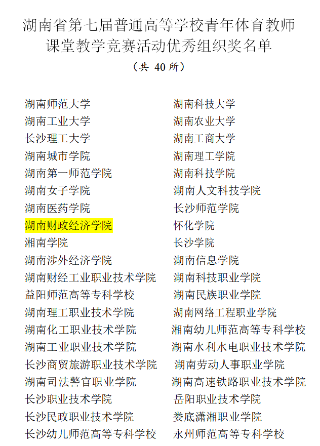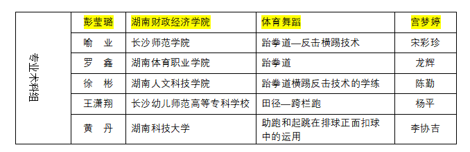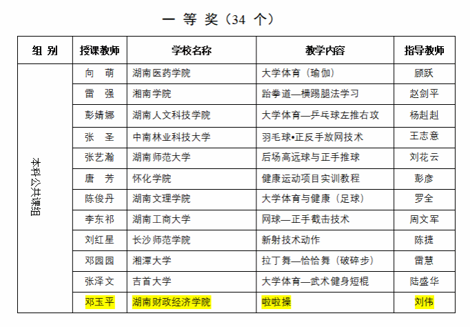 (本网讯)世界杯官网体育学院教师在湖南省第七届普通高等学校青年体育教师课堂教学竞赛中斩获佳绩。展现出了卓越的专业素养、创新精神与教学能力,邓玉平老师的《啦啦操》获本科公共课组一等奖(指导老师刘伟);彭莹璐老师的《体育舞蹈》获专业术科组一等奖(指导老师宫梦婷);易钰杰老师的《体育经济-奥运的经济效益》获专业理论组二等奖(指导老师宫梦婷);世界杯官网获“优秀组织奖”。