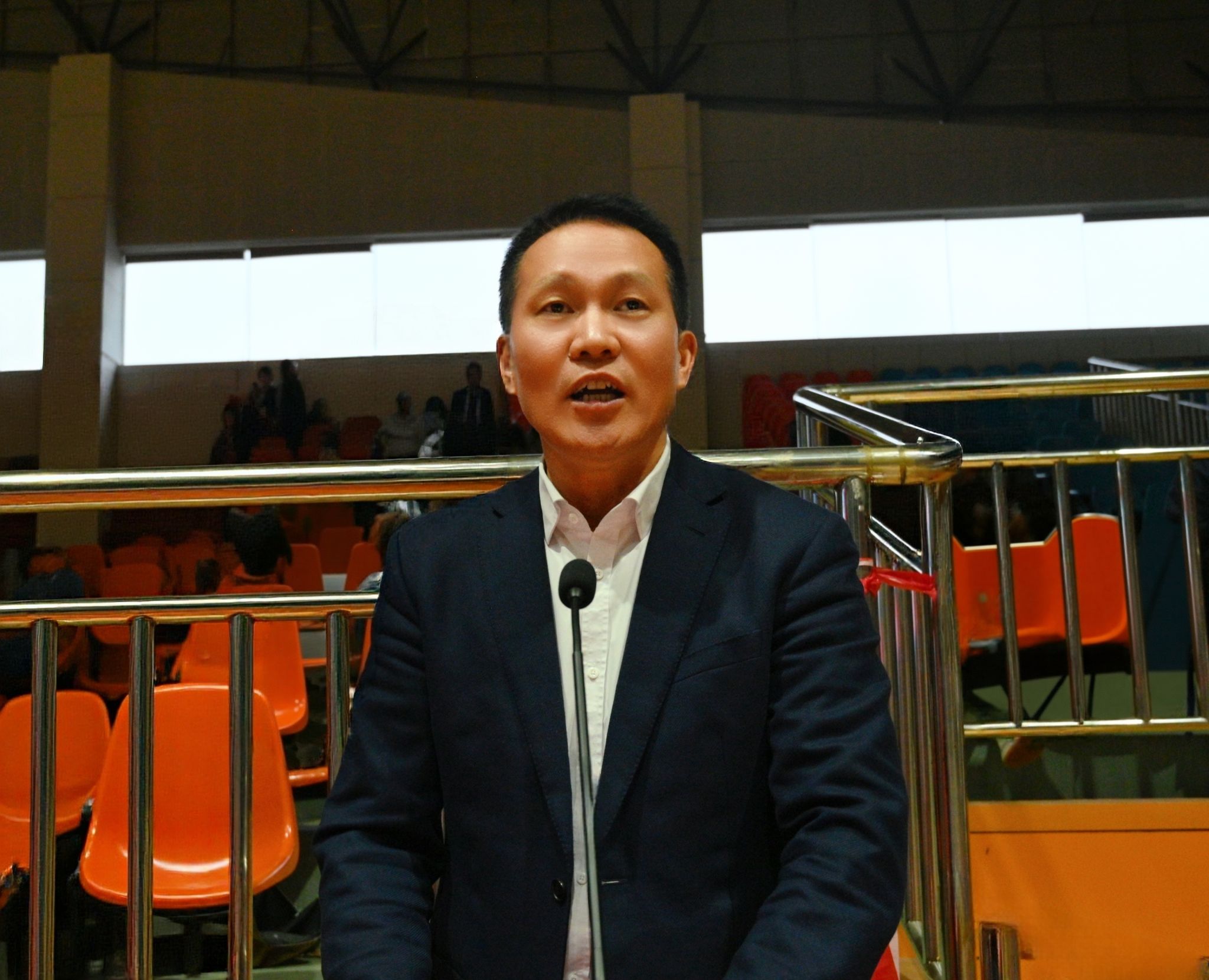 省政协原副主席、省大学生篮球协会名誉会长刘晓宣布比赛开幕(赵羽磊 摄)