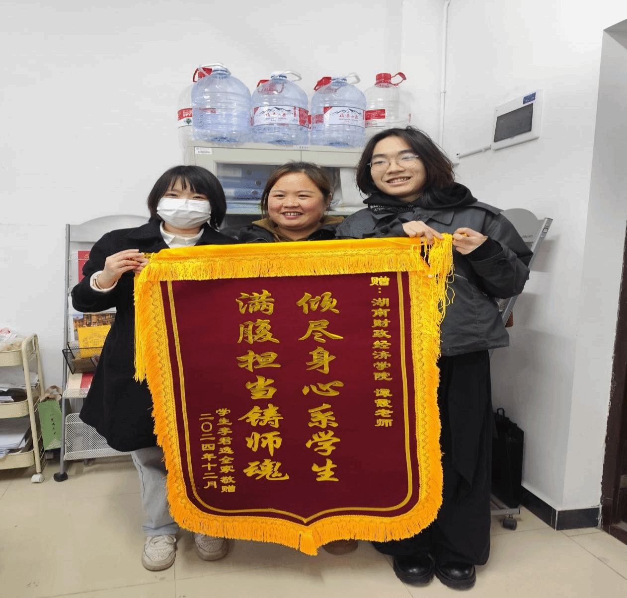 始终秉持“关爱学生,急学生之所急、想学生之所想,与学生共同成长”的辅导员工作理念。在工作中善于运用自己多年积累的心理工作经验,经常性下寝与学生谈心,从谈话中洞察学生可能存在的各种问题,让学生从心理上感受到教师和学校的温暖。2024年12月23日,2023级英语3班学生李君逸家长向谭霞及学院赠送“倾尽身心系学生 满腹担当筑师魂”荣誉锦旗和感谢信。其个人亦被评为2024年度学校心理健康教育工作先进个人和优秀辅导员。