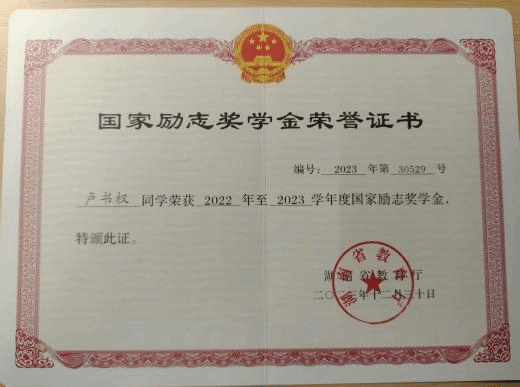 5.奖项荣誉:2022—2023年国家励志奖学金获得者