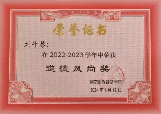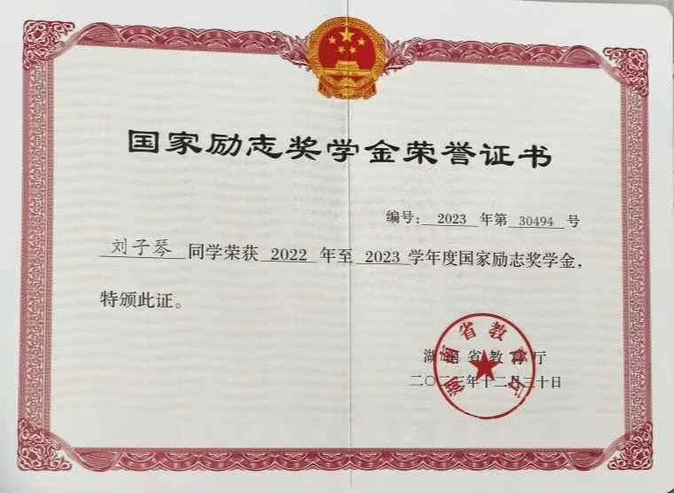 5.荣誉奖项:湖南省普通高等学校2025届优秀毕业生、2022—2023国家励志奖学金获得者