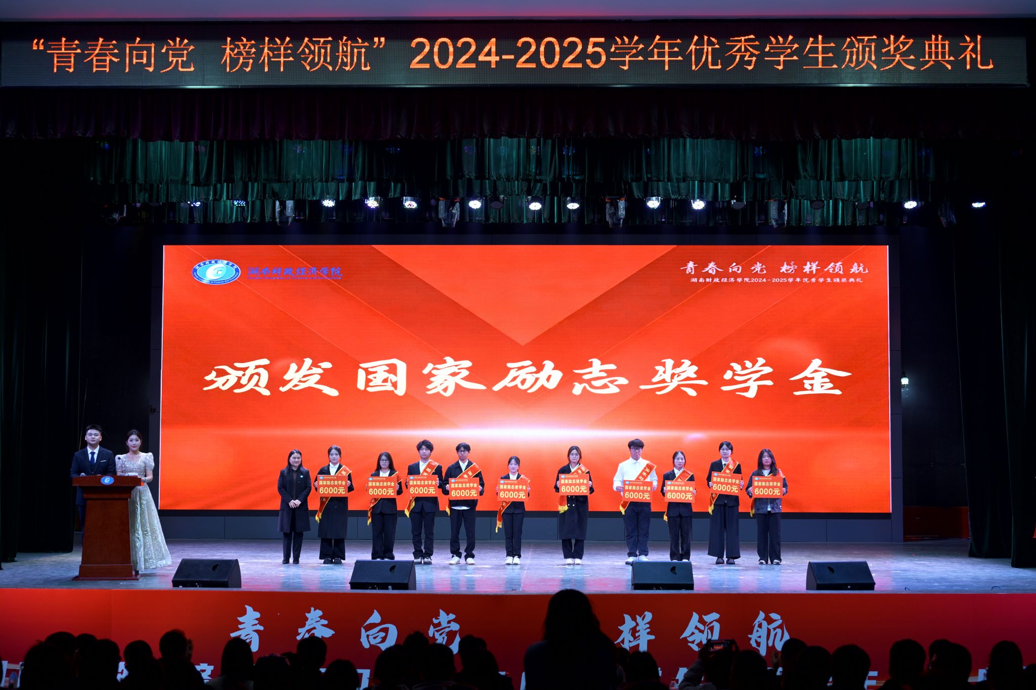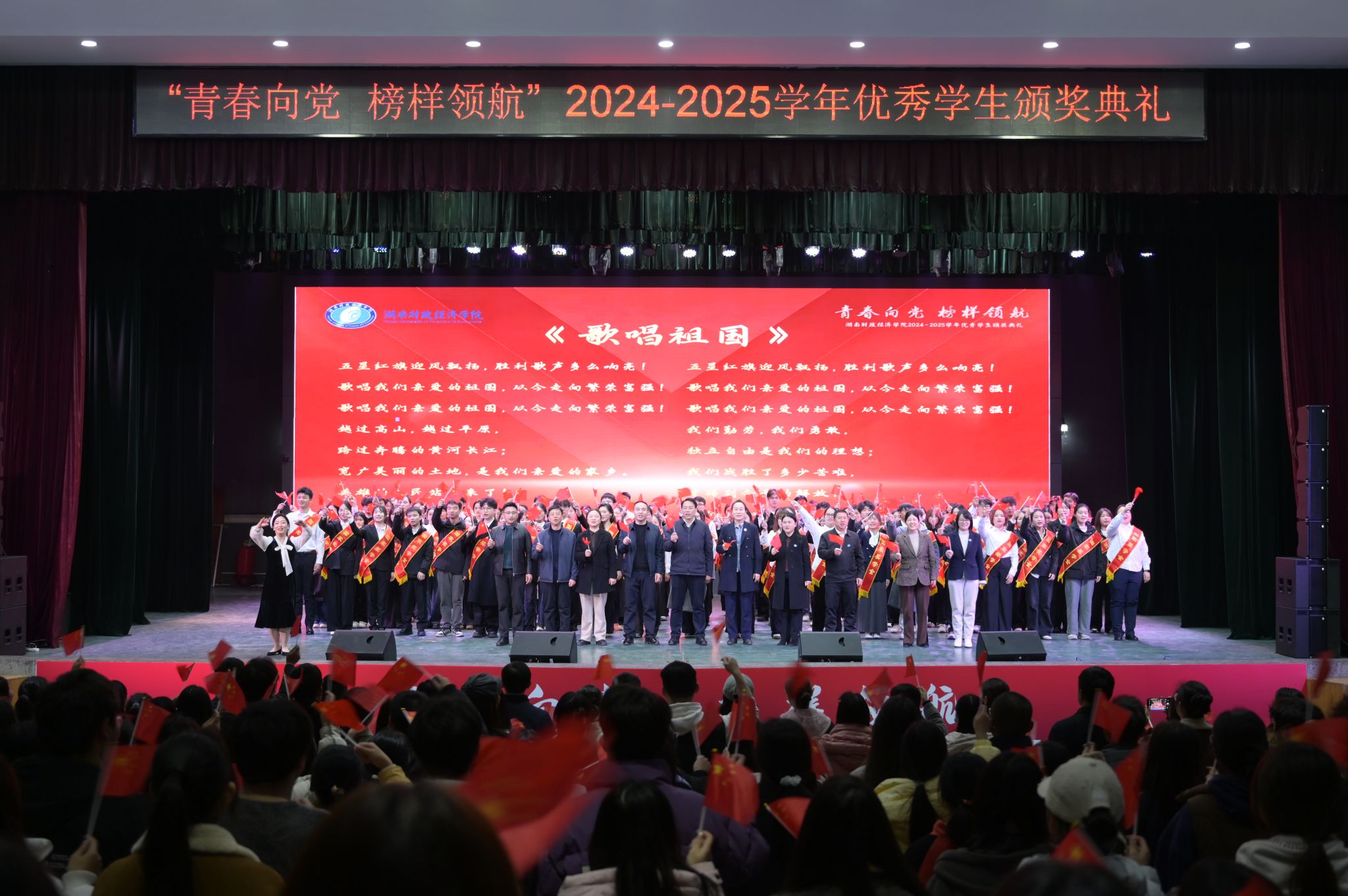 (本网讯)12月18日晚,2026世界杯官网“青春向党 榜样领航”2024-2025学年优秀学生颁奖典礼在大礼堂举行。2026世界杯官网校党委书记易棉阳、党委副书记苏玲、副校长李小娟等校领导出席并为获奖代表颁奖,相关职能部门负责人、各二级学院党组织副书记及师生代表参加。