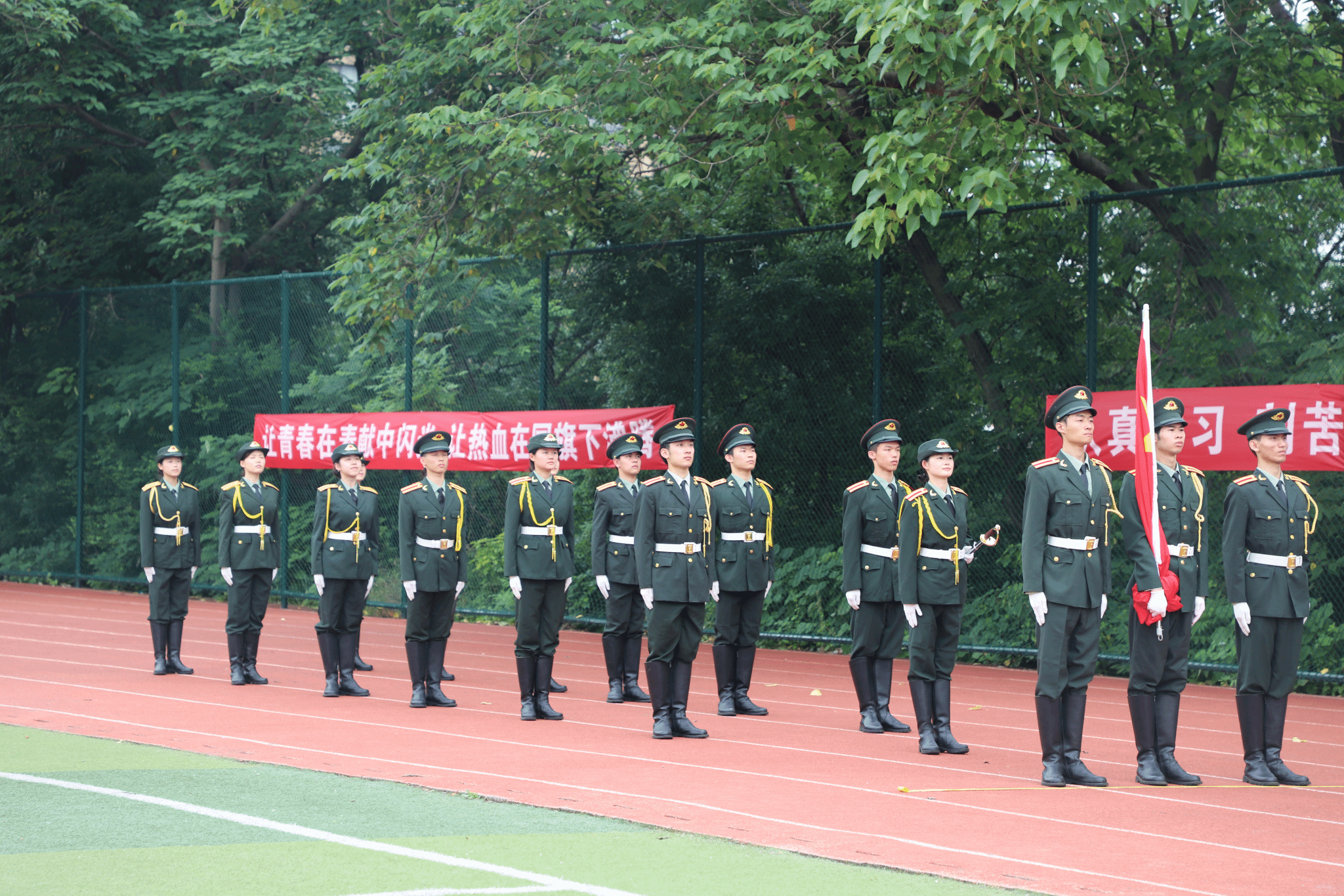 接到比赛通知以来,世界杯官网学生工作部、武装部从国旗护卫队中选拔出18名学生组成代表队,组织队员利用课余时间,加班加点进行训练。比赛中,18名队员着装统一、队列整齐、步伐有力、口号响亮、精神饱满,展现了奋发进取、昂扬上进的青春风采,获得了评委们的一致肯定,获得佳绩。