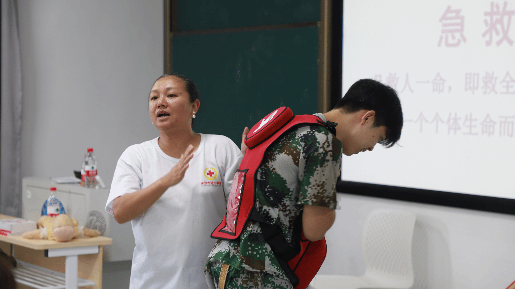 (本网讯)为加强世界杯官网学生教官急救意识,提高应急救护能力,学生工作部、武装部联合长沙市红十字协会于2024年6月1日至2日,在雷锋学院至诚楼L1101为世界杯官网2024级准教官开展为期两天的初级救护员资格培训。
