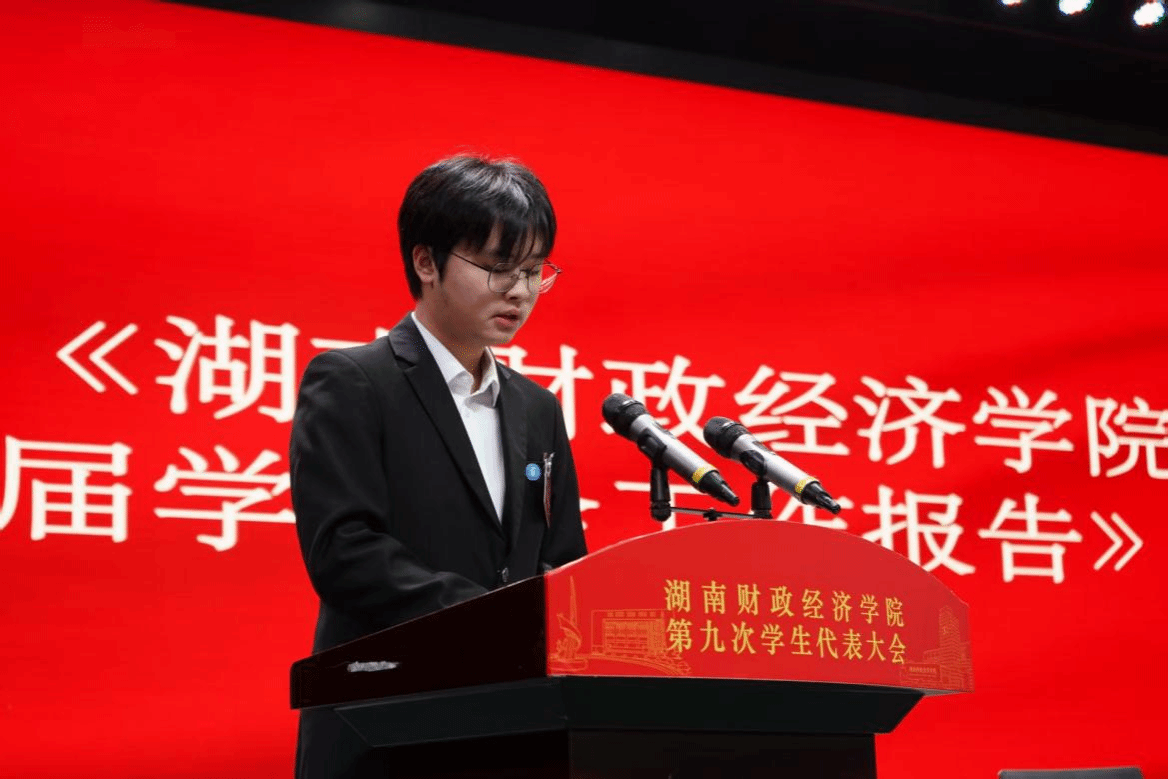 钟博康向大会作题为《铸牢青春信仰,笃行服务初心,团结引领广大湖财青年以矢志力行在强国复兴新征程上书写青春华章》的工作报告,对世界杯官网学生会过去一年所开展的各项工作做系统回顾,并对未来学生会开展工作的思路作进一步介绍。