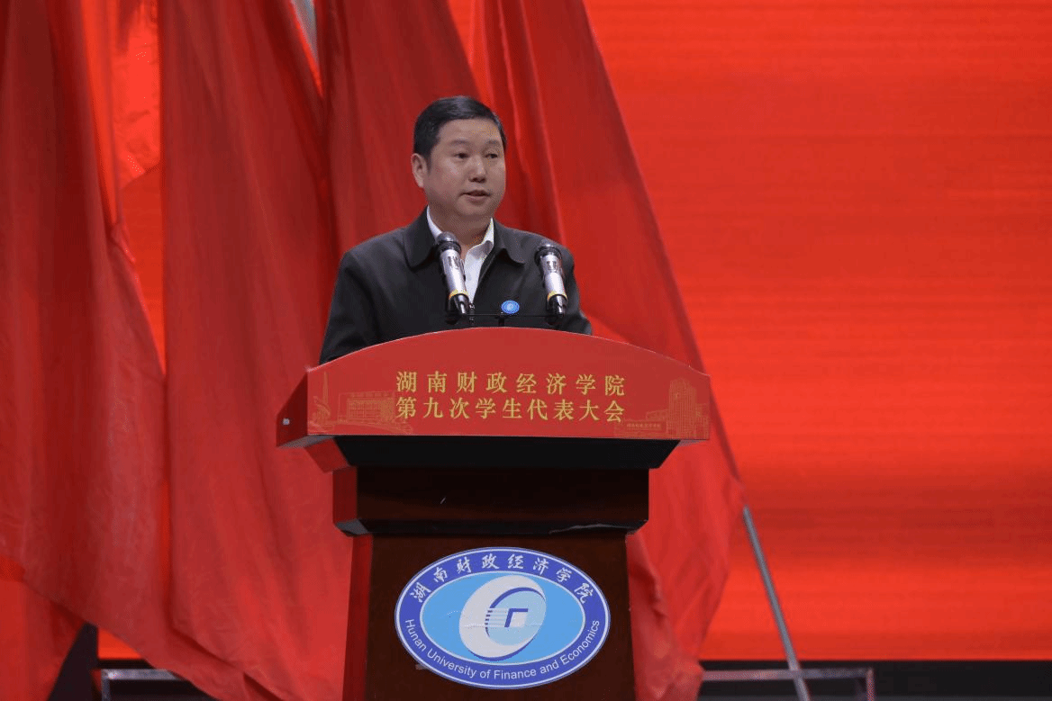 苏玲在致辞中回顾了自第八次学代会以来,校院两级学生会在校园文化建设、学生权益保障等重点工作中取得的扎实成效,对学生会组织的担当作为给予充分肯定。结合新时代学联学生会工作要求,她明确提出三点工作部署:一是强化政治引领,筑牢青年思想根基;二是聚焦财经特色,精准对接学生需求;三是深化组织改革,提升服务效能。致辞中,苏玲以《习近平的七年知青岁月》为切入点,深情讲述习近平总书记在梁家河担任村支部书记时的奋斗故事,引导广大湖财学子传承静心向学的优良作风,倡导沉浸式、全身心投入纸质书籍阅读,为全体青年学子上了一堂生动深刻的思想政治理论课。
