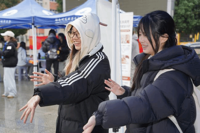 咸嘉湖社区卫生服务中心的专业医护人员坐镇健康咨询区,为女生们提供免费的妇科健康、皮肤调理一对一专业指导,用科学建议为女性身心健康筑牢屏障,让青春成长有专业守护相伴;特色互动区域则为女生们打造了情感表达的温暖阵地,大家在“祝福墙”落笔写下美好期许,在“发声墙”勇敢袒露成长心声,一纸一笺汇聚成属于女性的温暖力量;礼仪问答、姿势猜猜猜等形式的素养体验环节,让女生们在轻松愉悦的氛围中收获知识、增进交流,展现出新时代校园女性自信从容的精神风貌。