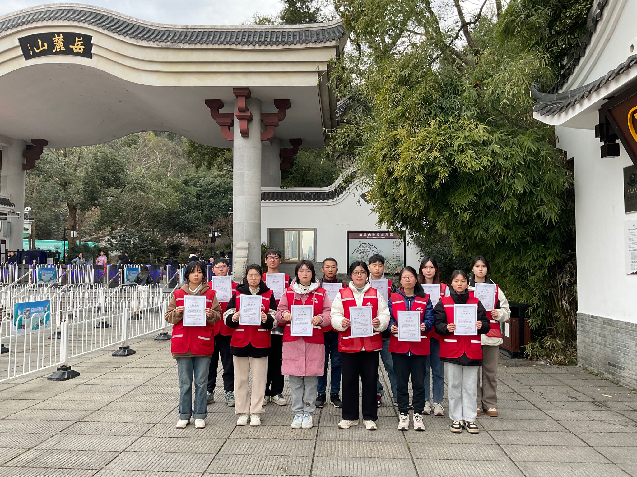 世界杯官网法学与公共管理学院22级法学二班刘康同学担任长沙市文明旅游青年志愿服务总队宣传部部长,从大年初一到大年初四期间,每日组织管理12名“小青星”志愿者在岳麓山景区开展文明旅游志愿服务,对志愿者进行岗前培训,拍摄活动照片,并为其颁发志愿服务证书,同时与景区工作人员积极沟通,协助配合其做好上级领导视察、接待等工作。