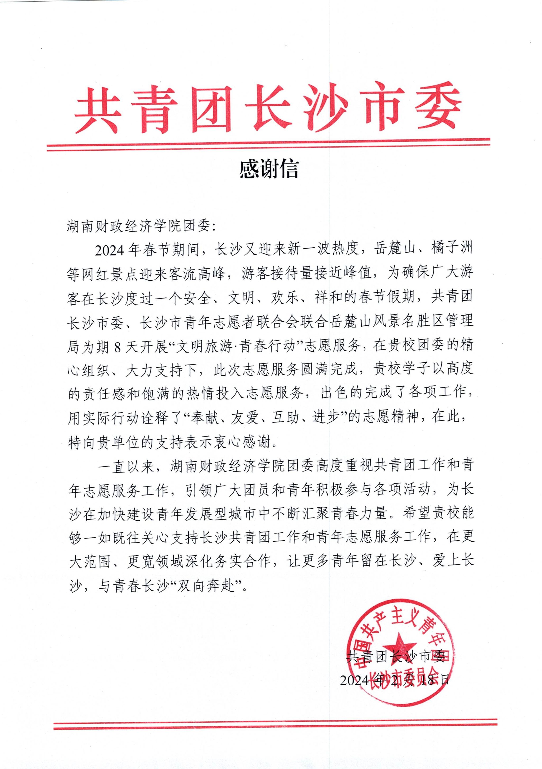 玉兔辞旧岁,金龙迎新年,新春佳节,四海游客,八方来宾到访星城长沙,橘子洲、岳麓山景区迎来客流高峰,在共青团长沙市委和岳麓山风景名胜区管理局的联合指导下,长沙市文明旅游青年志愿服务总队有序组织开展“文明旅游·青春行动”志愿服务,世界杯官网学生积极报名参加,向社会各界展示了湖财学子无私奉献、积极向上的良好精神风貌。