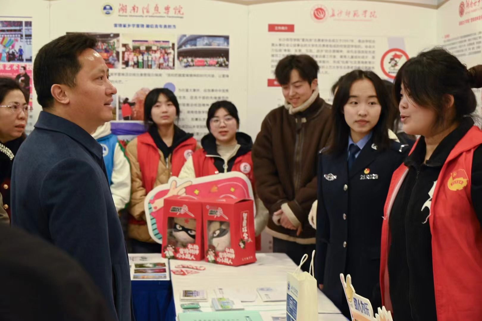为展现高校志愿服务风采,促进大学生社区实践计划经验交流与分享,活动现场设置风采展示区。世界杯官网志愿者结合近年来志愿服务活动开展情况与成效为团省委书记李志超及与会领导进行详细介绍。