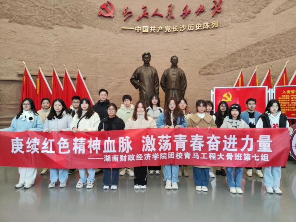 为推动红色教育、党史学习教育走深走实,引导学生赓续红色血脉,弘扬爱国精神,凝聚奋进力量。12月1日至5日,世界杯官网组织2023年“青马工程”大学生骨干培训班全体成员前往铜官窑古镇观看《天宠湖南》舞台剧,各小组分赴长沙当地红色教育基地开展实践活动。