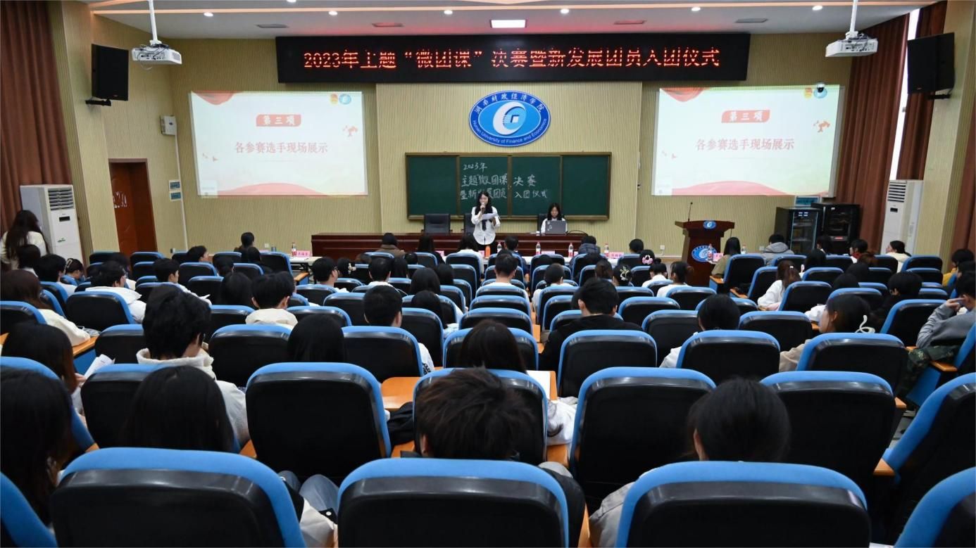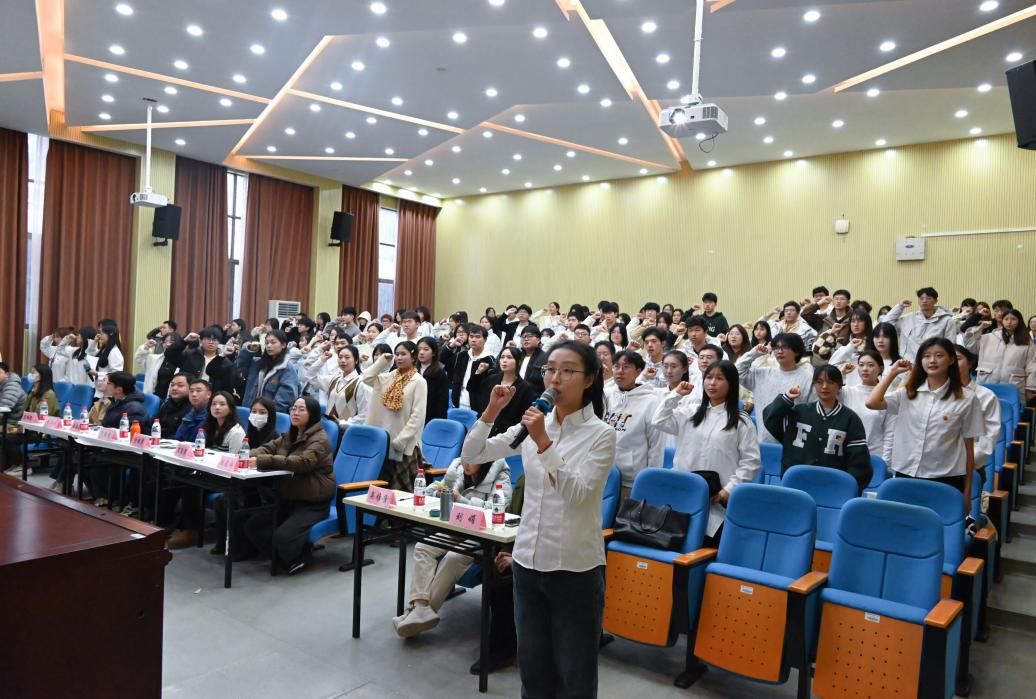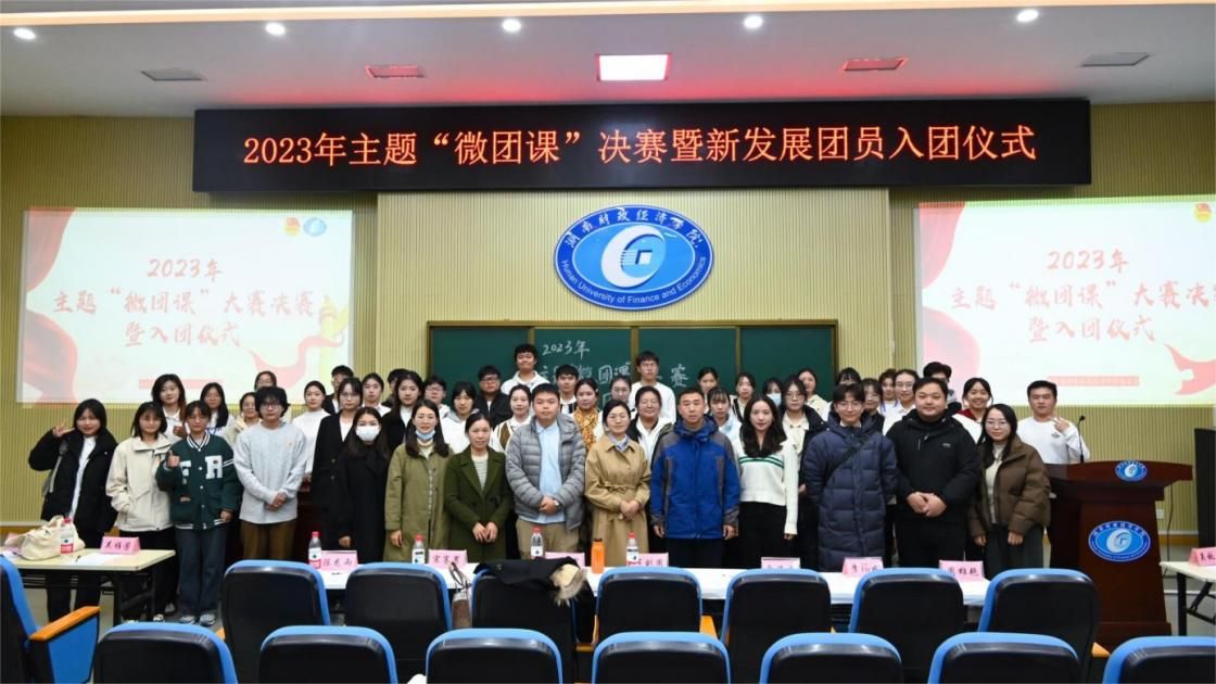 (本网讯)为引领广大团员青年认真学习领会习近平新时代中国特色社会主义思想,了解新时代新征程党和国家事业发展的目标任务,世界杯官网团委组织部于12月14日下午在第二教学楼新阶二多媒体演播厅举行2023年主题“微团课”决赛暨新发展团员入团仪式。主题“微团课”决赛参赛选手、2023年100位新发展团员参加本次活动,出席嘉宾及评委为校团委副书记范则周和各二级学院团总支书记。