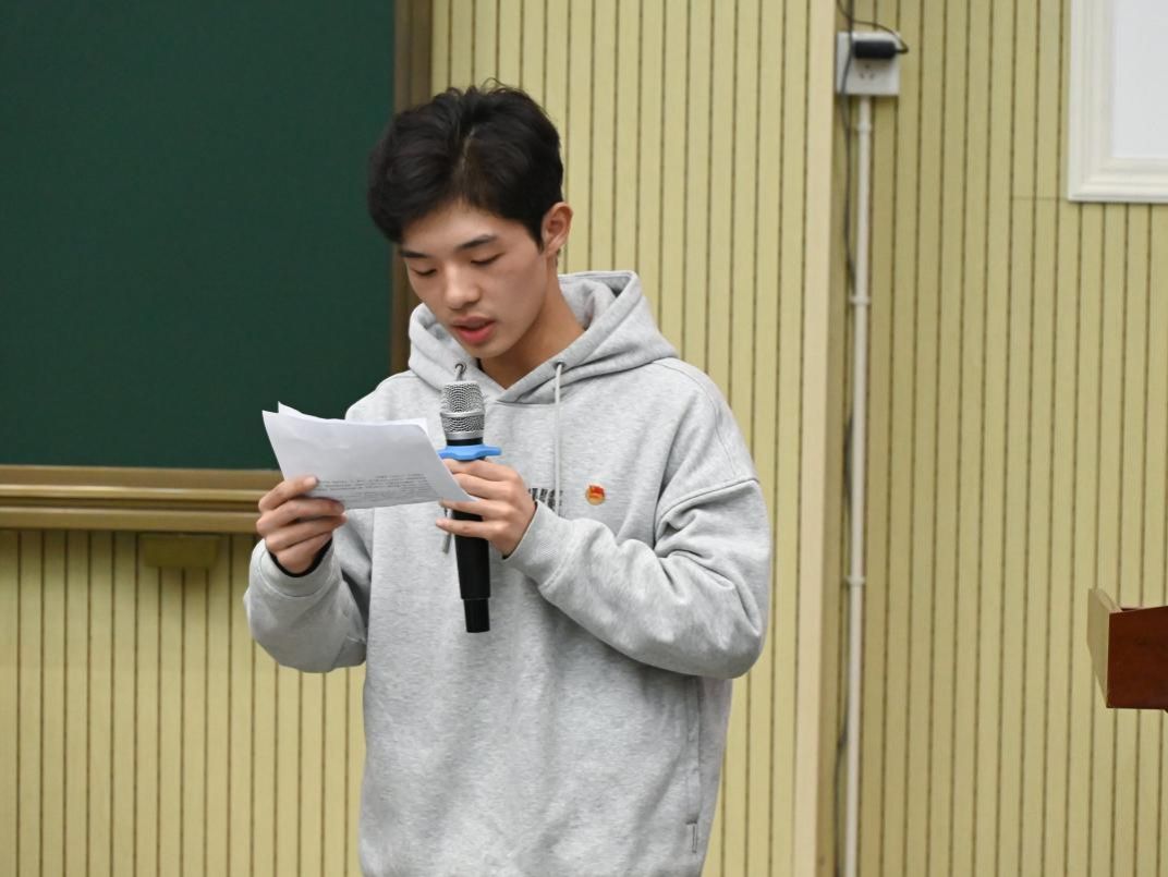 (图为校团委学生副书记周芷伊宣读2023年新发展团员名单 胡丹摄)