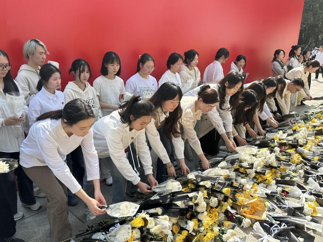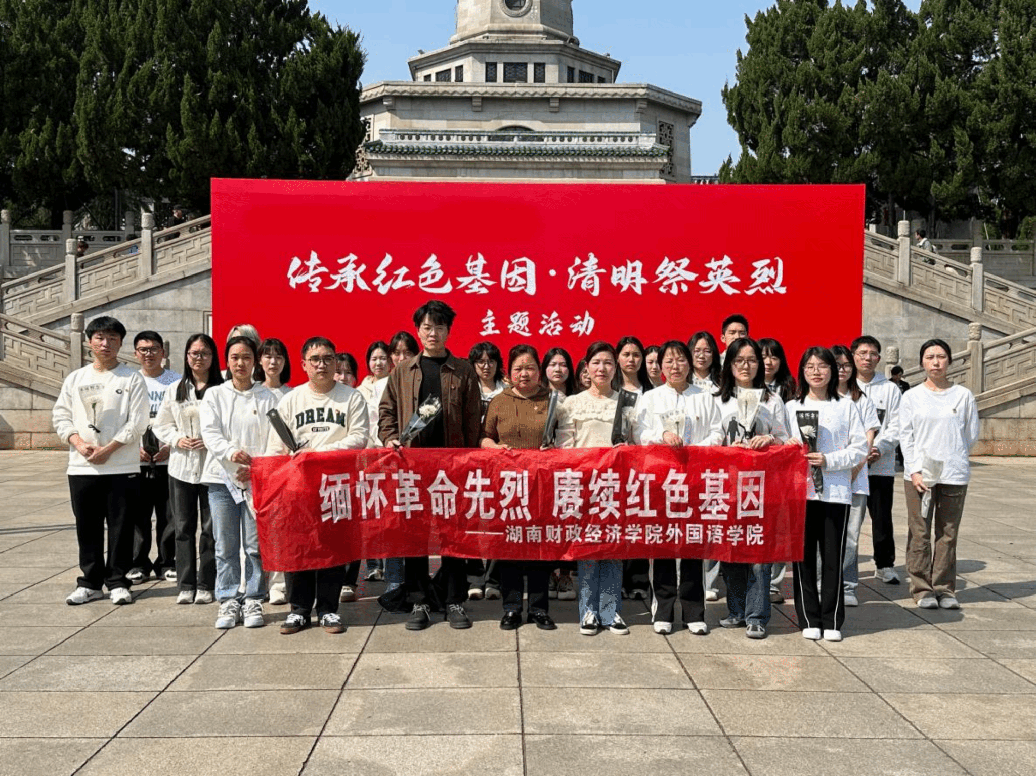 清明时节,翠柏凝春。为弘扬和传承英烈精神,坚定理想信念,厚植家国情怀,4月2日下午13点,外国语学院走进烈士公园开展了“缅怀革命先烈,赓续红色精神”清明祭奠先烈活动。外国语学院党委副书记张鹏、团总支书记胡文志、学生第二党支部书记代承轩、辅导员马小红、谭霞带领学院学生党员和主要学生干部共同参与了此次活动。活动由张佳慧主持。
