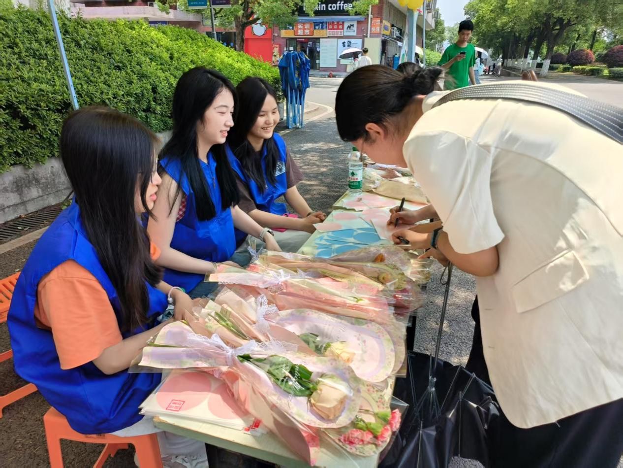 为响应“525全国大学生心理健康日”号召,工商管理学院团学会于5月26日中午11:00在大礼堂测坪成功举办“暖语寄人,花香予人”换花行动。活动以传递温暖、凝聚校园正能量为核心,吸引众多师生踊跃参与,为校园注入青春温情与蓬勃活力。