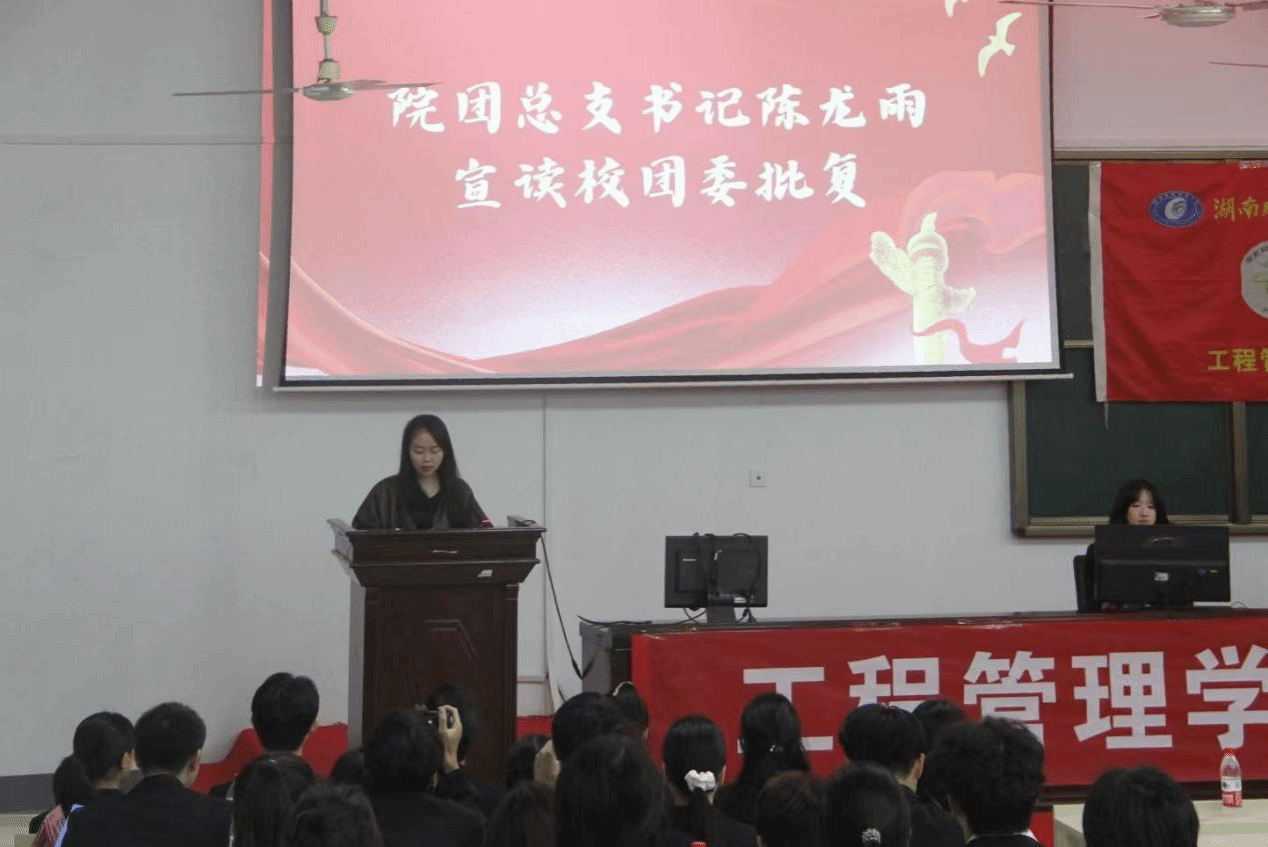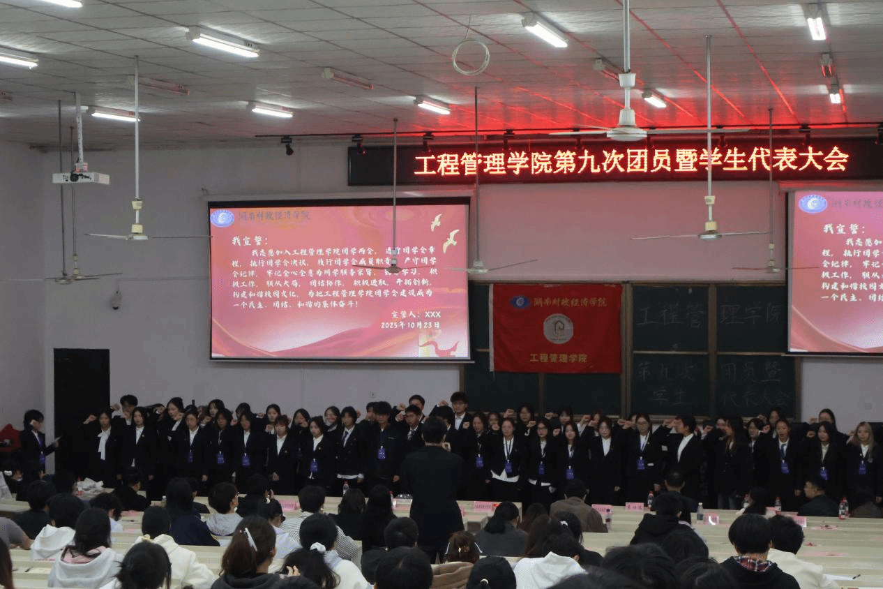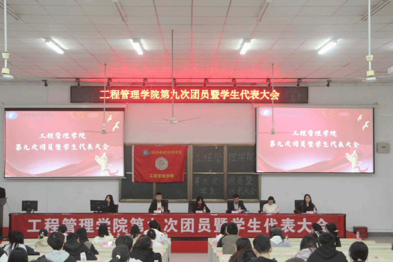 10月23日18:30,2026世界杯官网工程管理学院第九次团员、学生代表大会暨换届大会在2J01教室召开。学院党委书记向占宏、党委副书记刘绿丝、副院长刘纯霞等领导老师,校级组织及各二级学院代表,学院团学会全体干部和学生代表参会,大会由2023级陈英明同学主持。