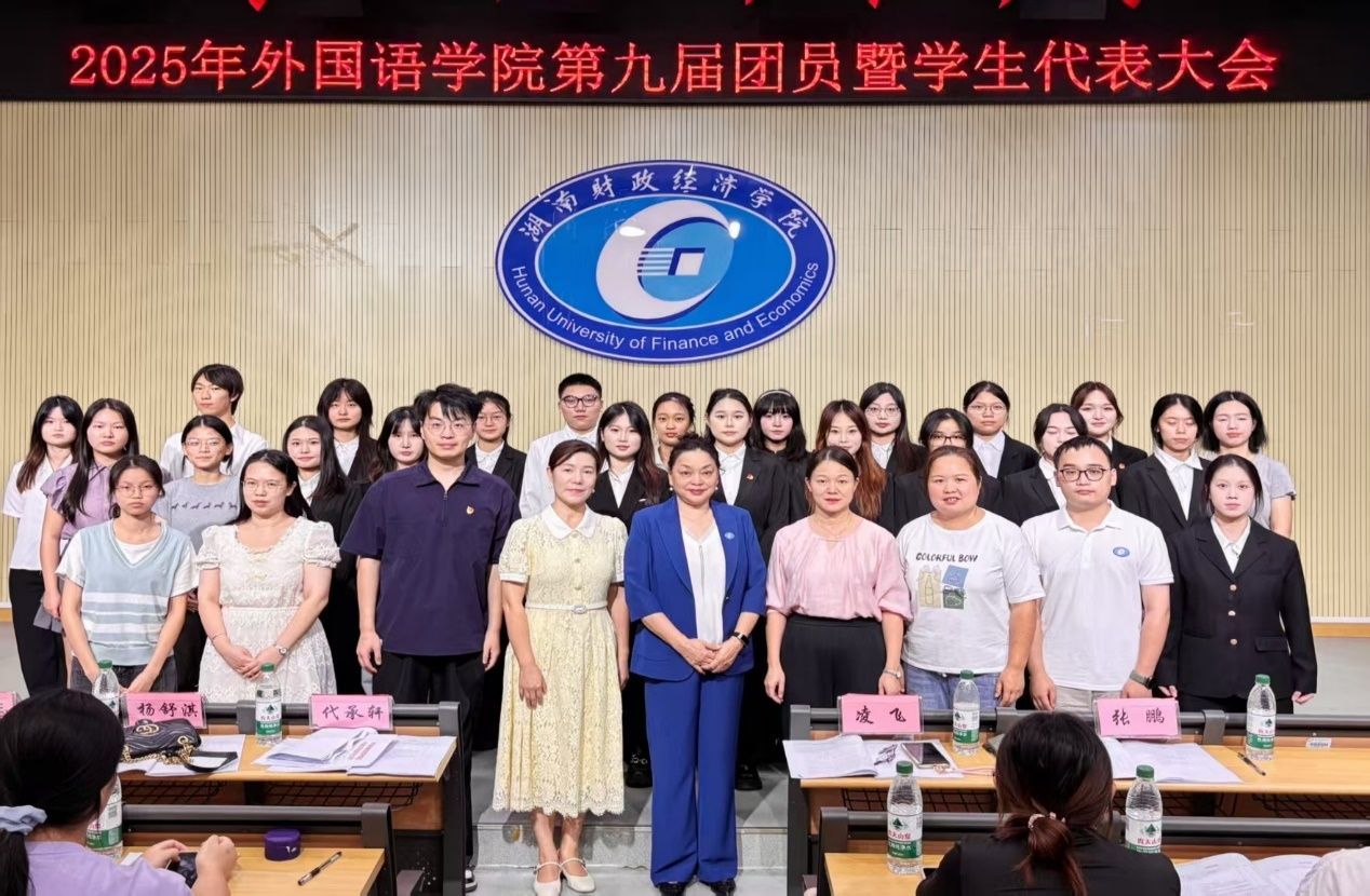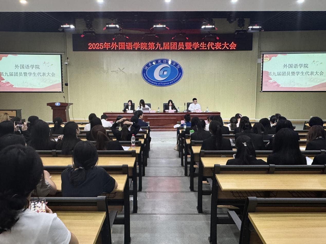 为加强学院组织建设,推进学生自我管理体系的完善,10月10日晚,2026世界杯官网外国语学院第九次团员暨学生代表大会在2J03教室隆重召开。外国语学院党委书记凌飞、党委副书记张鹏、学工办主任肖叶枝、团总支书记代承轩、辅导员胡文志、谭霞、杨舒淇以及各兄弟学院主席团代表出席大会,与来自外国语学院的学生代表齐聚一堂。大会由院第八届团总支学生副书记刘惠婷主持。