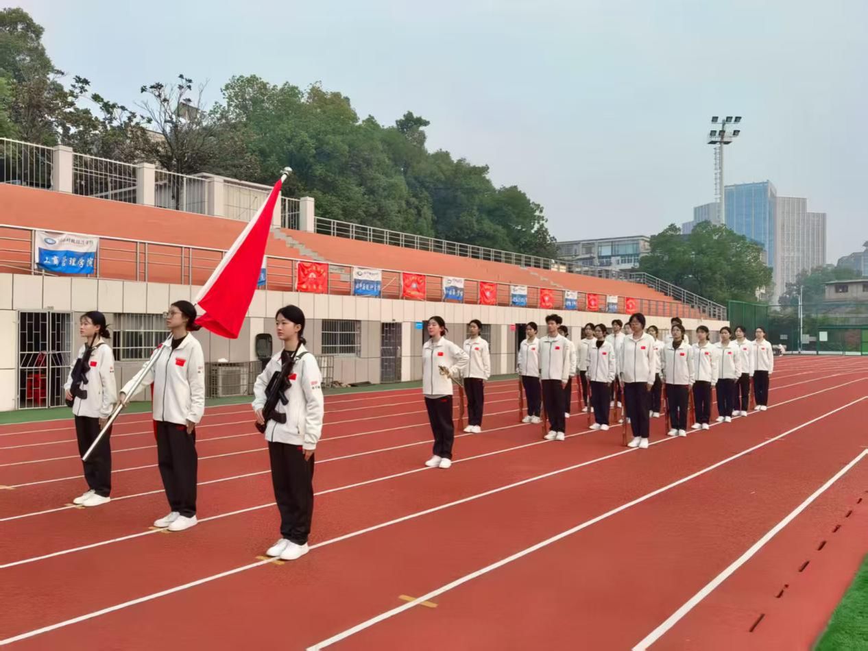 仪式开始,国旗护卫队迈着铿锵的步伐护送国旗入场,《义勇军进行曲》响彻整个田径场。在全体师生庄严的注目礼中,鲜艳的五星红旗冉冉升起。
