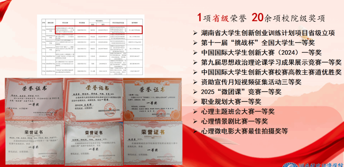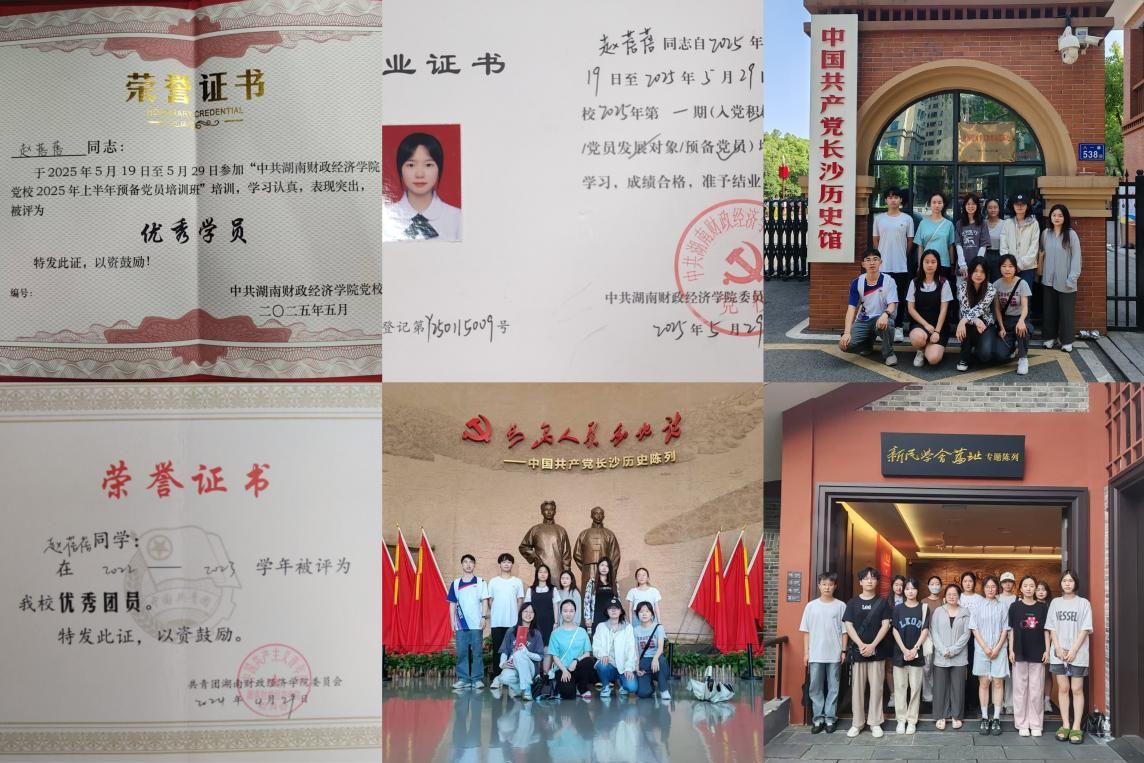 2024年4月获评“优秀团员”,在预备党员培训班中荣获“优秀学员”称号。她主动牵头组织同学走进长沙党史馆等红色教育基地,推动理论学习与实践行动深度融合,以坚定的理想信念践行青年使命。