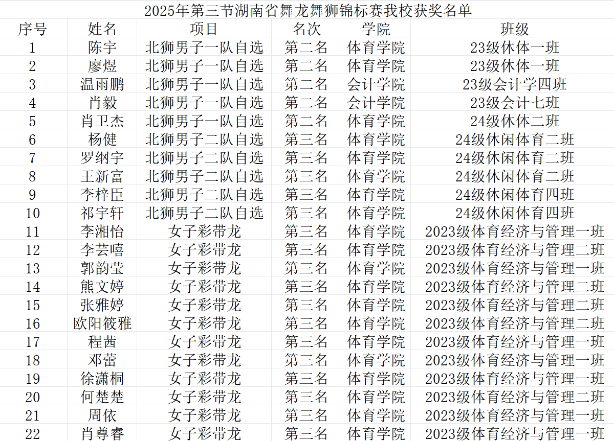 本次参赛队伍由领队刘伟,教练戴狄夫、曾金珠、孙正精心组织与带领,队员涵盖体育学院、会计学院等多个学院,共计22人。具体获奖名单如下:
