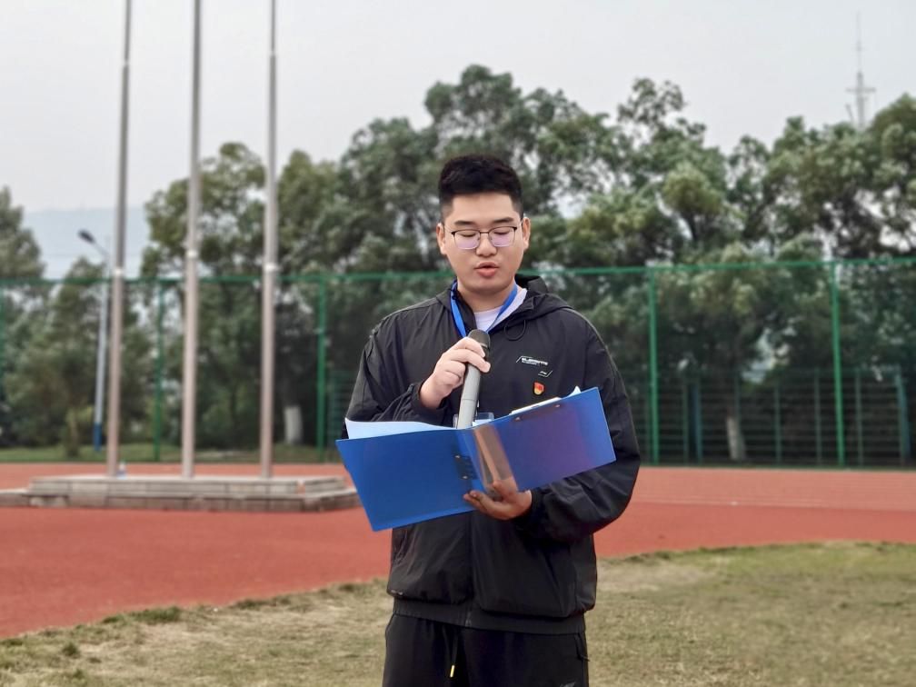 在国旗下,2023级电子信息工程专业邓涛作为学生代表发言。他以“青春逢盛会,财院赴新程”为主题,紧扣党的二十届四中全会精神,结合学院专业特色,阐释了新时代青年的责任与使命。他表示,身处智能科技飞速发展的新时代,湖财学子要将专业知识与国家战略需求相融合,把个人理想追求融入党和国家事业发展之中,在中国式现代化建设的伟大实践中彰显青春担当,贡献智慧力量。