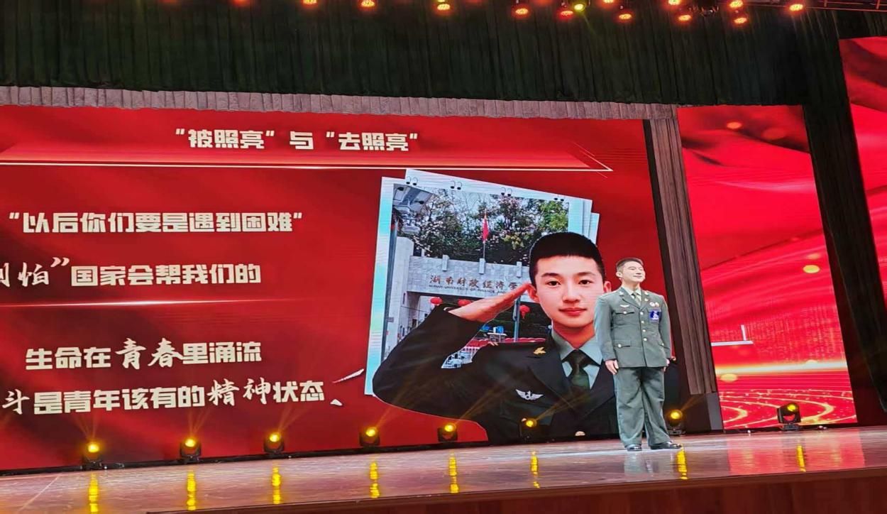 本次赛事由湖南省教育厅主办,旨在通过国家助学贷款政策的宣传,鼓励广大学子结合自身经历讲述资助护航成长的感人故事。备赛期间,学院紧扣资助育人主题,依托专业特色组织学生积极参与。徐晶老师从主题立意到表达技巧,为池绍博提供了精准细致的指导。池绍博将军旅生涯中淬炼的初心与担当融入创作,将国家资助政策助力求学的切身经历转化为真挚的情感表达。他以沉稳的台风和富有感染力的讲述,生动诠释了当代青年感恩自强的精神底色,最终赢得了省级专家组的高度认可。