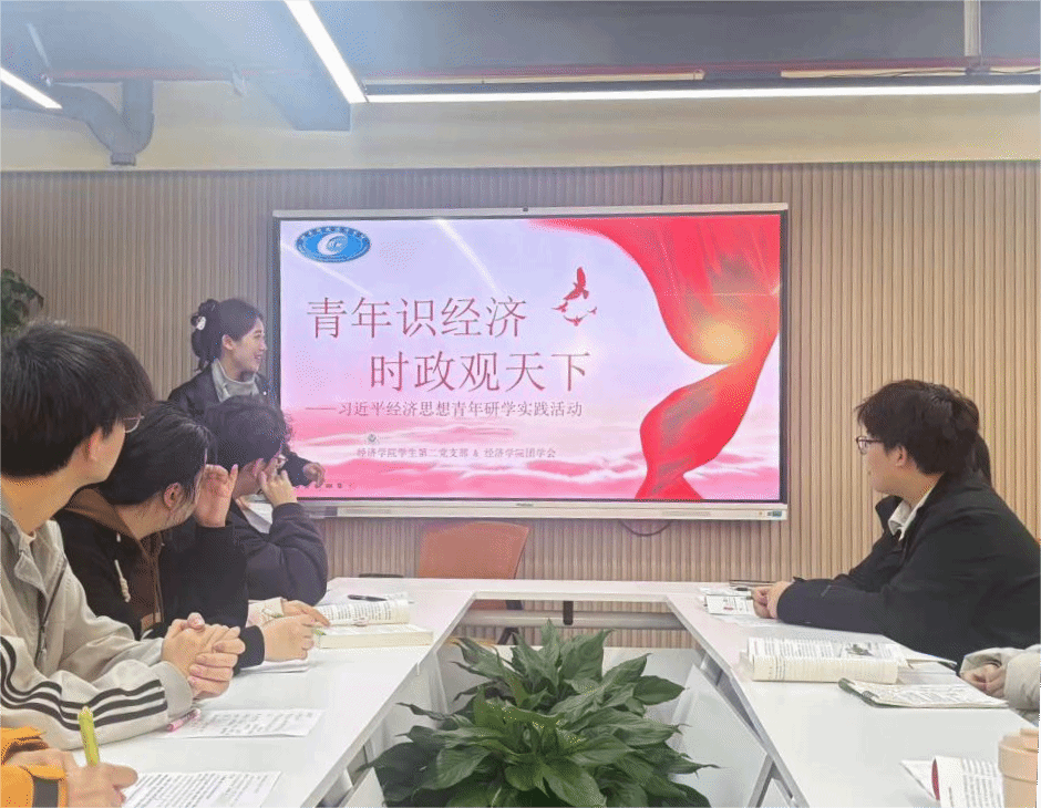 为扎实推进党建带团建工作,引领青年学子坚定理想信念、深耕专业学识,3月31日中午,经济学院学生党支部与团学会在 18 栋学生社区成功举办“青春心向党・研学悟经济”习近平经济思想学习活动,经济学院学生第二党支部书记欧璐、团总支书记宋赛男出席活动,经济学院学生党员、团员代表共同参与学习交流。