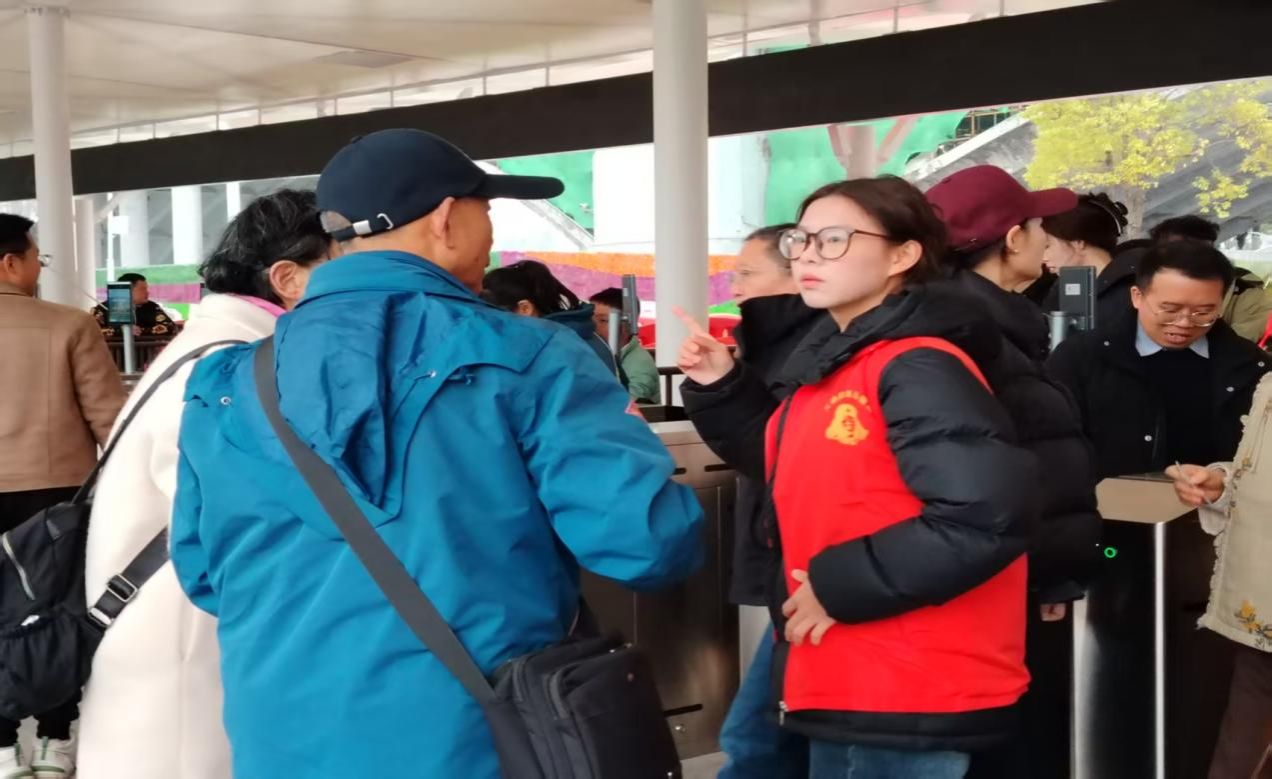 志愿者耐心引导游客入场