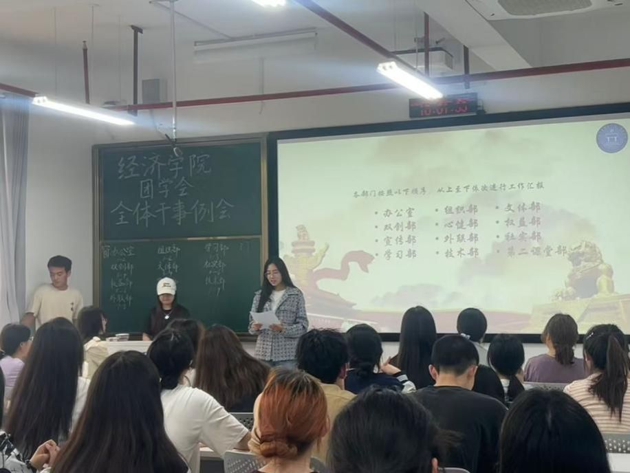 3月26号下午4点,经济学院第六届团总支学生会(以下简称“团学会”)在雷锋校区L1201教室召开了经济学院2025年第一次全体干事例会。经济学院团学会各部门干事出席了本次会议,本次例会由办公室干事颜宇杰主持。