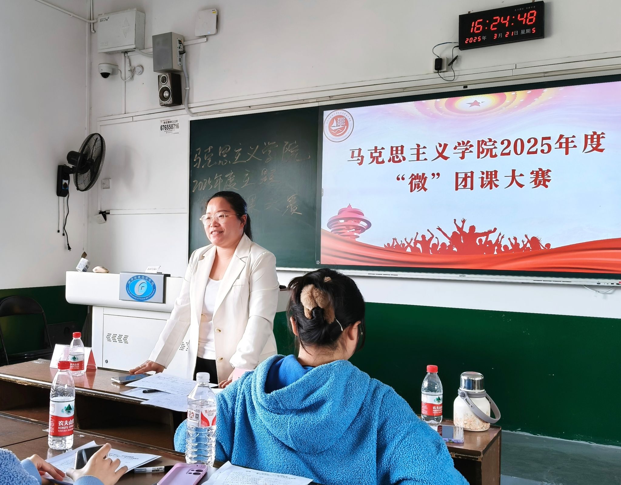 3月21日,马克思主义学院于主校区1406教室举办“青春向党,挺膺担当”主题“微”团课初赛。学院各年级团员和青年踊跃参与,院团总支书记周雄艳、辅导员阳海飞和罗婷担任评委,刘一环主持活动。