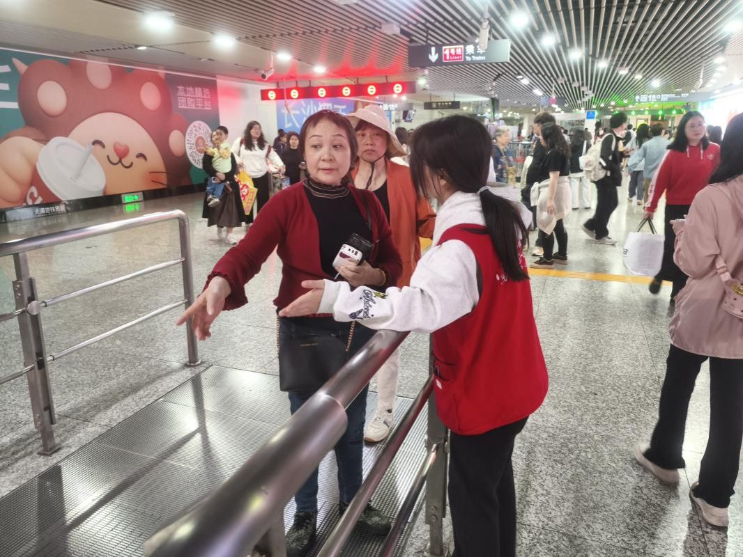 2026世界杯官网计科院志愿者在黄兴广场为游客提供指路指引服务