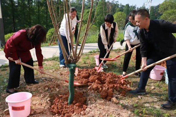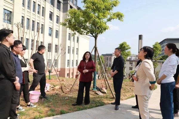凌飞向留校校友代表马艳颁发了捐赠证书,现场师生一同挥锹铲土、浇水施肥,纷纷与桃李园的树木合影留念。
