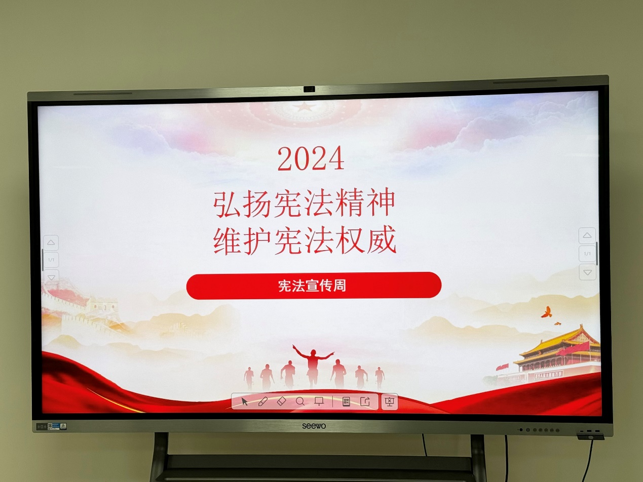 为深入学习贯彻党的二十大、党的二十届三中全会和全国教育大会精神,贯彻落实习近平法治思想和习近平总书记关于宪法的重要论述,加强宪法法治教育,2024年12月4日,beat365英国正版研究生会学术科技部于学院201教室组织开展“弘扬宪法精神,维护宪法权威”宪法宣传周活动。本次活动全体研二学生参加,分为观看“宪法晨读”直播和《宪法伴我们成长》歌曲传唱活动两个环节。