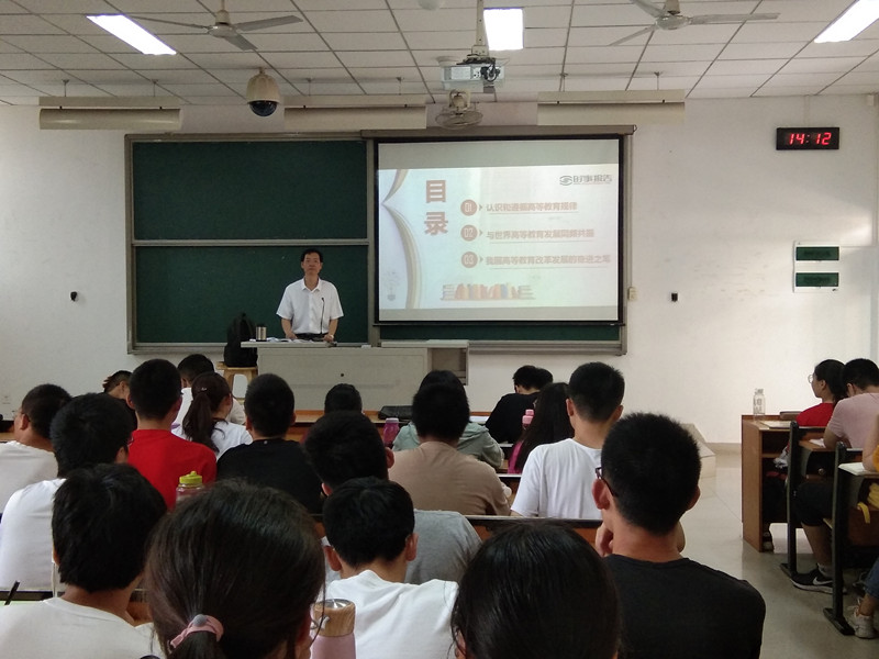 张海滨书记从高等教育规律、世界高等教育发展趋势、我国高等教育改革发展奋进之笔等三个方面展开进行授课。他表示,当前世界正在瞄准以学生为中心的本科教学,我们要建设具有中国特色世界水平的一流本科教育,写好高等教育改革发展的奋进之笔。他鼓励大家,认识和抓住高等教育改革发展契机,全面发展并努力成长为担当民族复兴大任的时代新人。