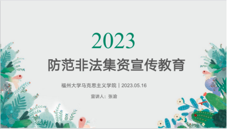为使广大学子有效认识到非法集资的危害性,增强风险防范意识,5月16日,365官网权益部组织开展了“防范非法集资”宣传教育活动,活动由权益部干事张渝主持,365官网研究生参加活动。